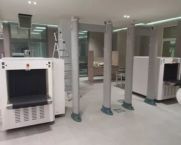 Нашей компанией изготовлены и введены в эксплуатацию двухпроекционные рентгенотелевизионные установки BERG для досмотра личных вещей сотрудников и посетителей офисного здания компании Зарубежнефть. По отдельному пожеланию заказчика оборудование было покрашено в нестандартный цвет по таблице RAL, а рабочее место операторов выведено в отдельное помещение на расстоянии более 20 метров от места установки интроскопов.
